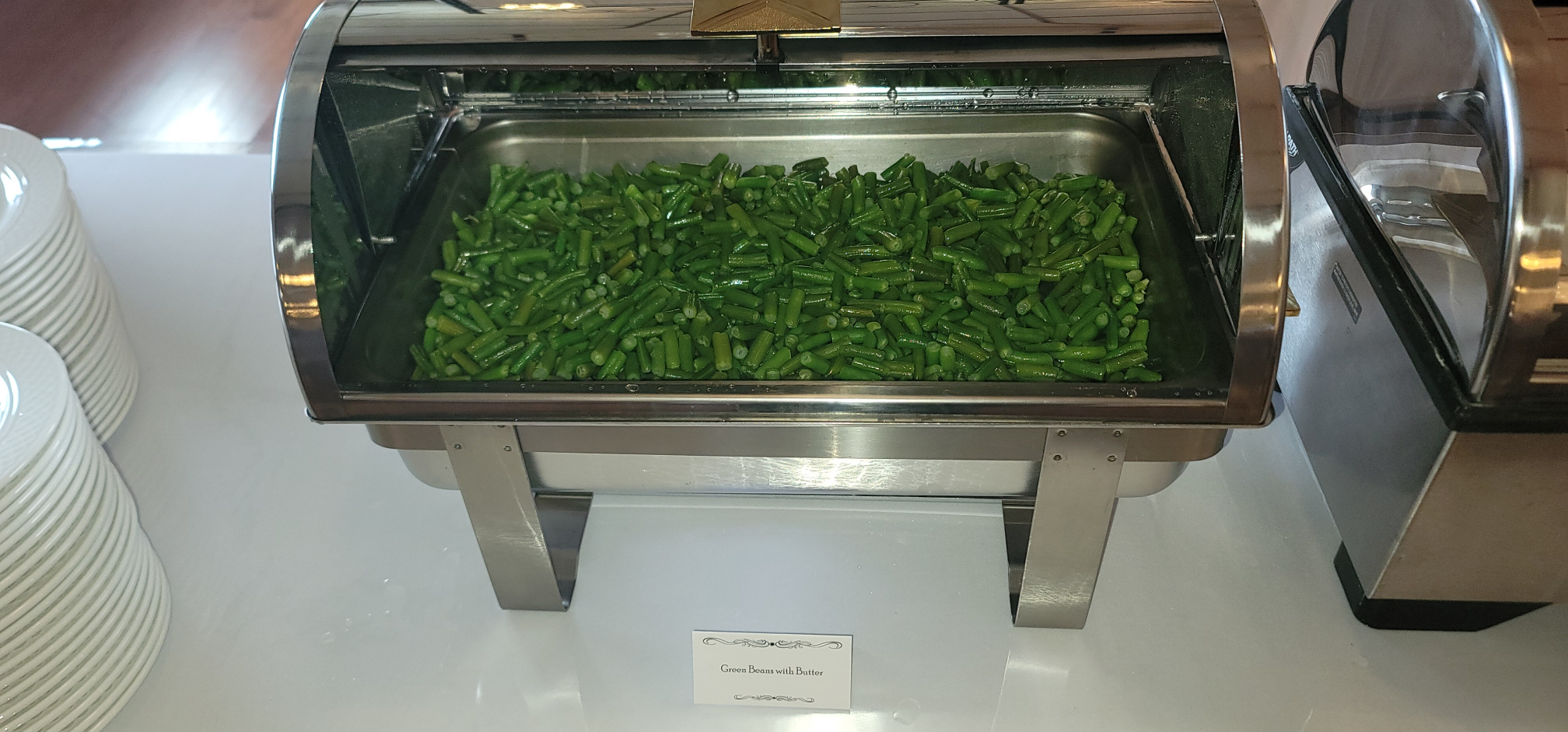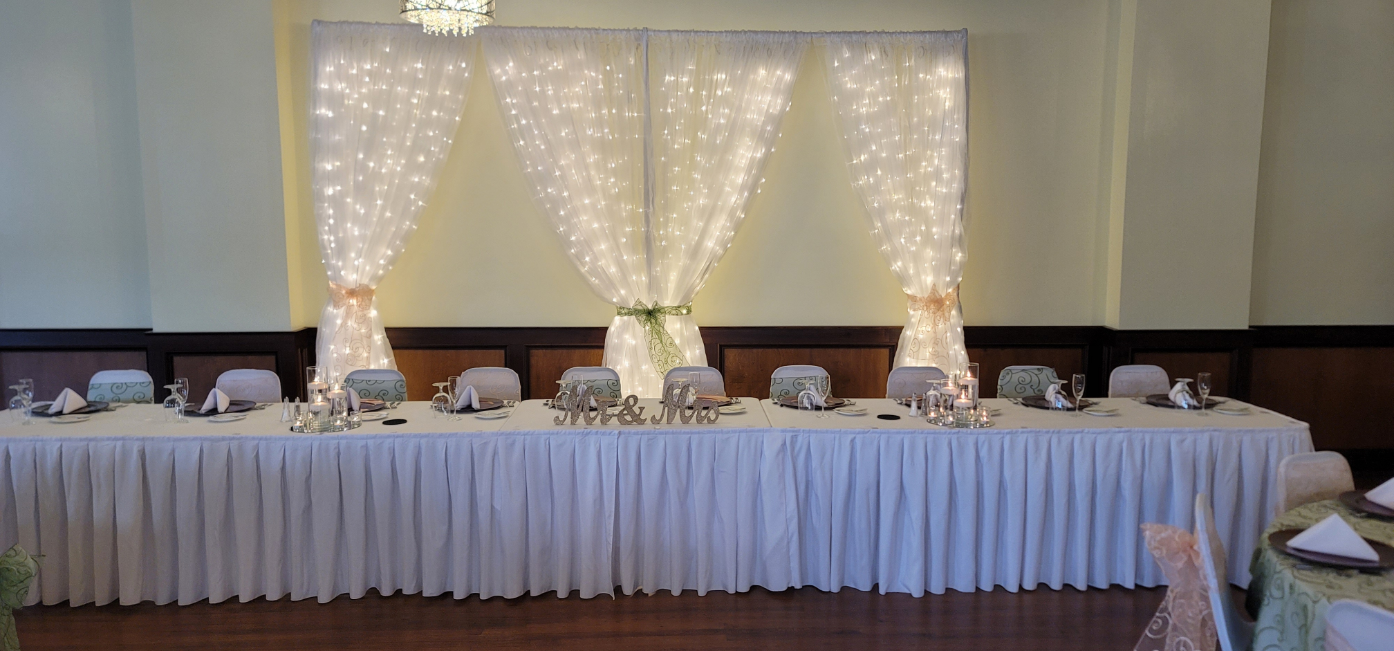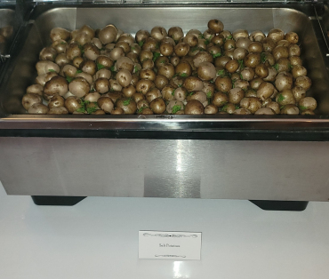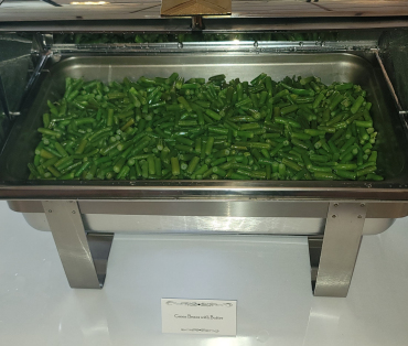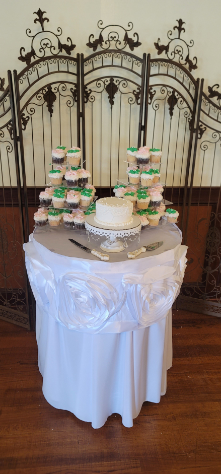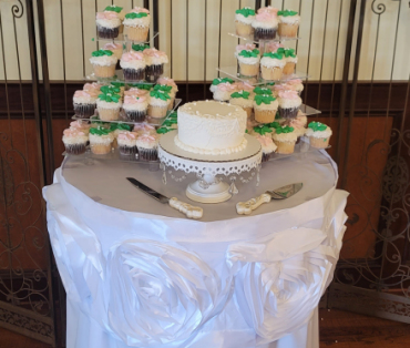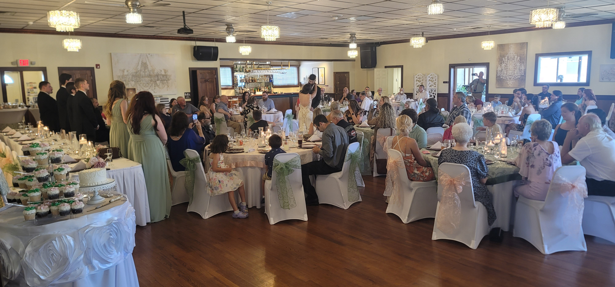 The happy couple forwent appetizers, and jumped right into dinner. They started with Caesar Salad, with dinner rolls from Spring Street Bakery. On the buffet they had Green Beans with Butter, Springfield Salt Potatoes, Penne Marinara, and our delicious house-made chicken tenders with gravy and dipping sauces.