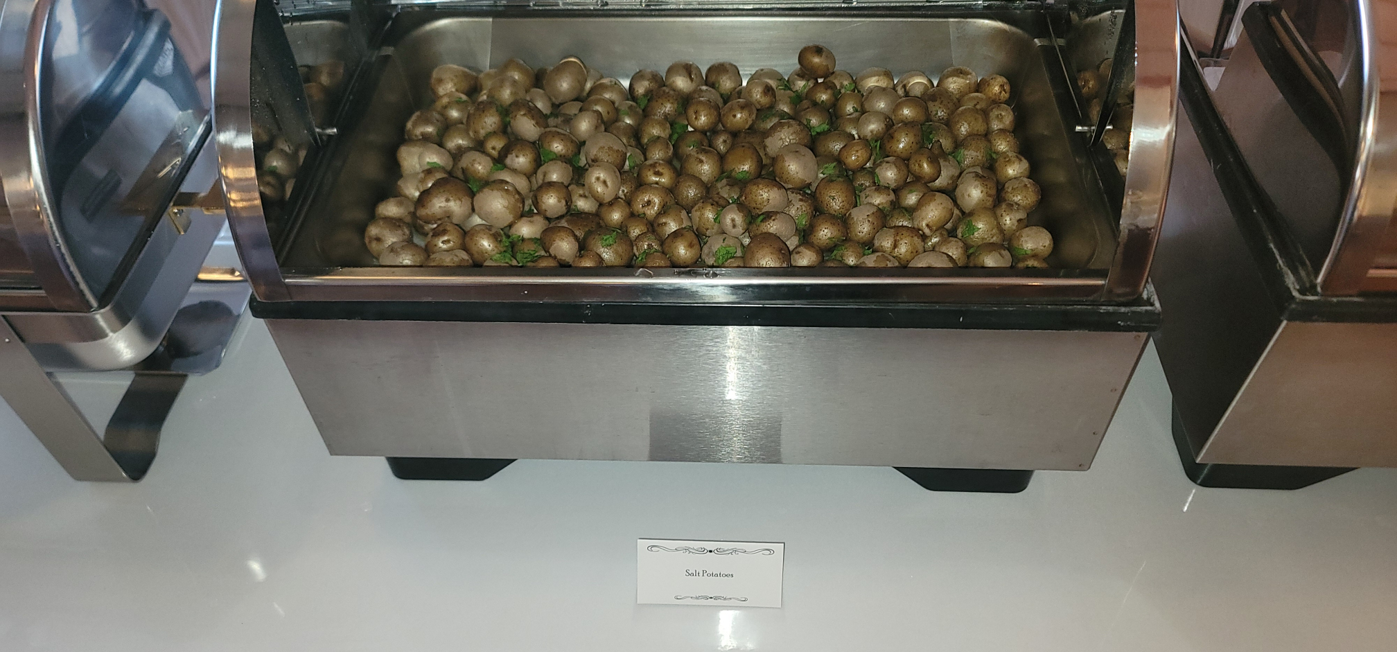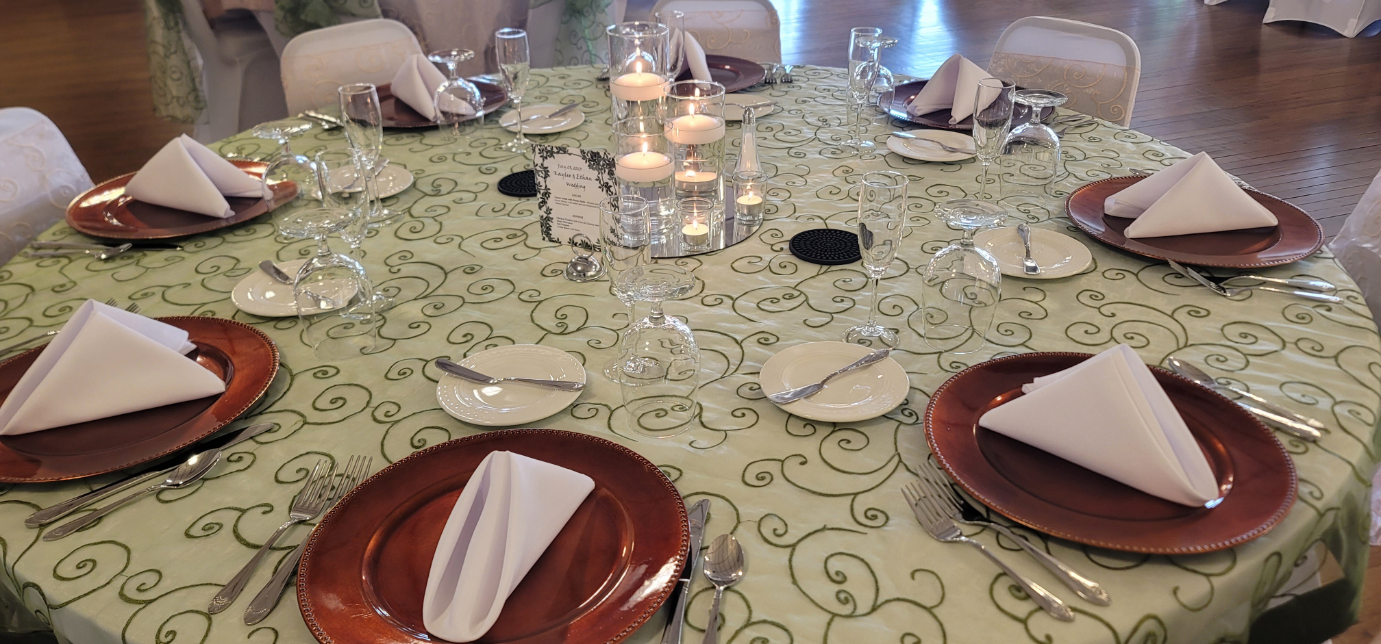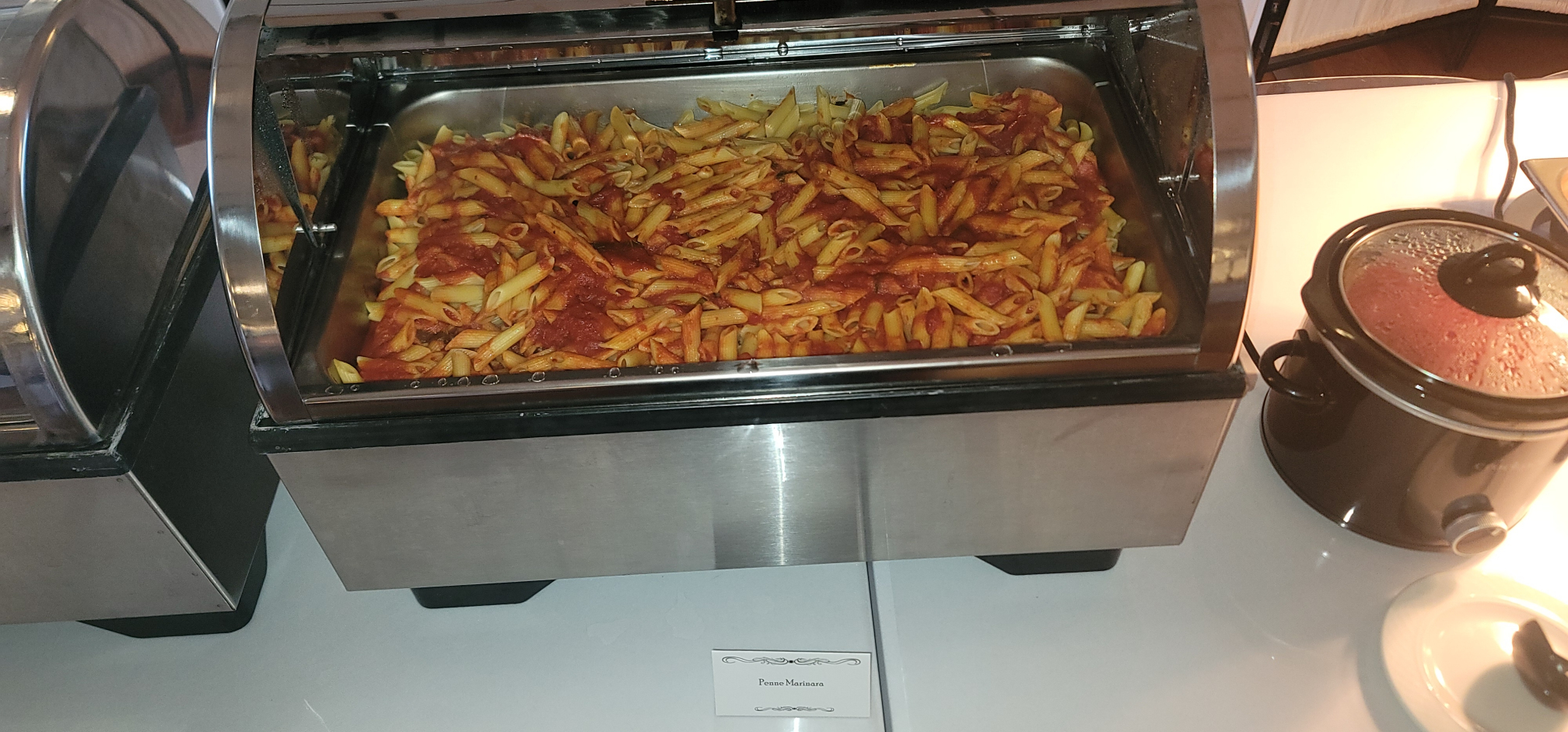 The happy couple forwent appetizers, and jumped right into dinner. They started with Caesar Salad, with dinner rolls from Spring Street Bakery. On the buffet they had Green Beans with Butter, Springfield Salt Potatoes, Penne Marinara, and our delicious house-made chicken tenders with gravy and dipping sauces.