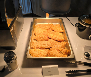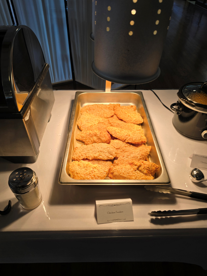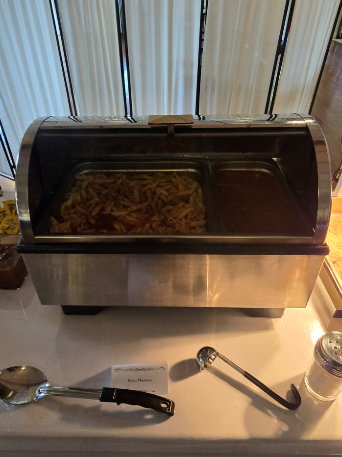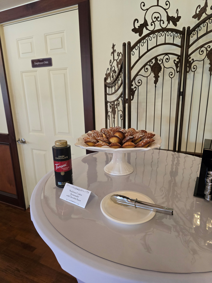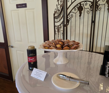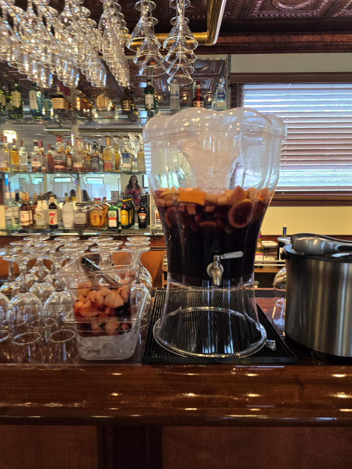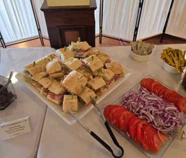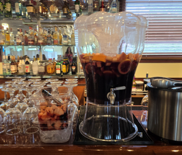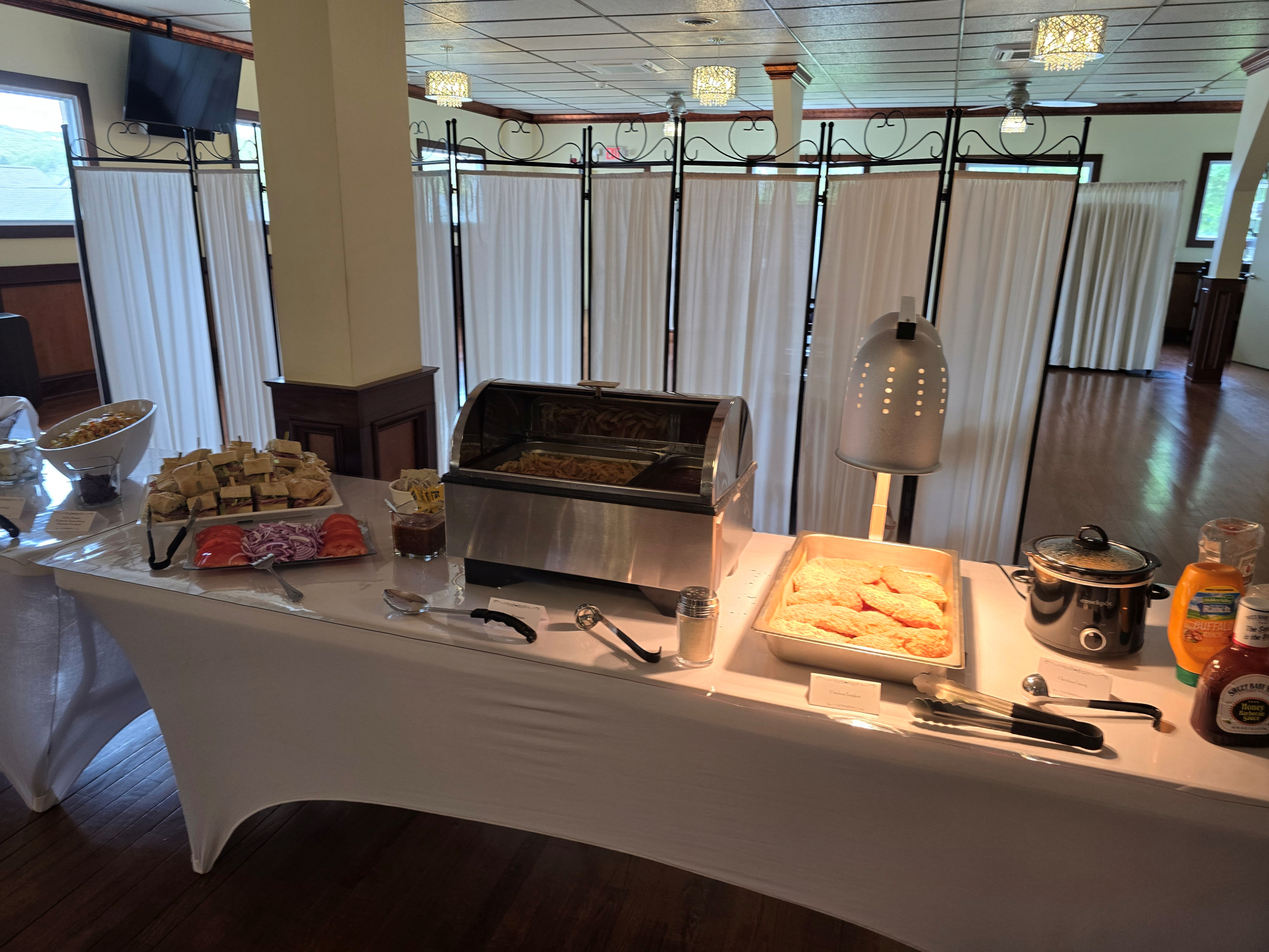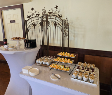 Her shower started with Bountiful vegetable display Ranch/Spinach Artichoke Dip. For dinner, they had a Garden Salad with Ranch & Italian dressings, Greek Pasta Salad, Mini Italian Subs on Ciabatta, Penne Marinara, and Chicken Tenders. For dessert, we set out a Fruit Display with Home Made Madeleines and Chocolate Sauce. They picked a Red Sangria for their signature drink.