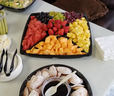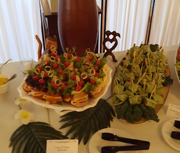 Here are pictures of just a few of our food selections (I need to take more food pictures, but we're always too busy taking care of the event when the time comes). We can add dishes and/or customize them to your desires.