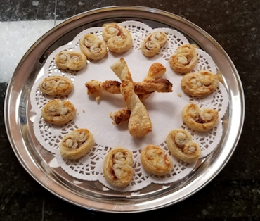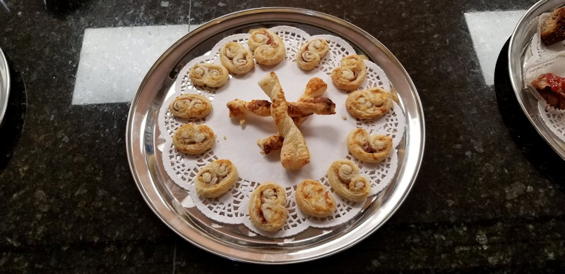 Prosciutto & asiago palmiers with parmesan & asiago cheese twists.